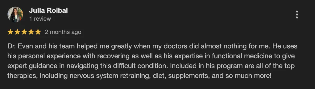 Through his step-by-step program, I identified root causes, corrected deficiencies, and started detoxification. The support from Evan, his team, and the community made all the difference.