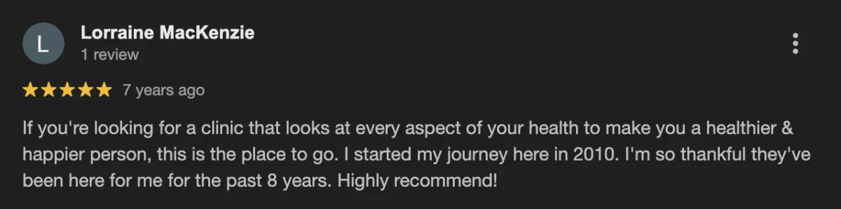 If you're looking for a clinic that looks at every aspect of your health to make you a healthier & happier person, this is the place to go.