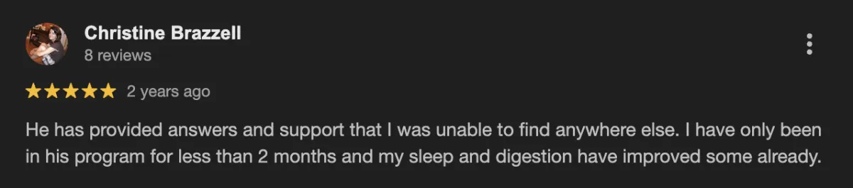 I have only been in his program for less than 2 months and my sleep and digestion have improved some already.