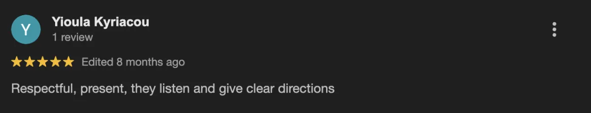 I feel so supported with such thoughtful and personalized care. Your communication/discussions/instructions are always clear and fully explained.